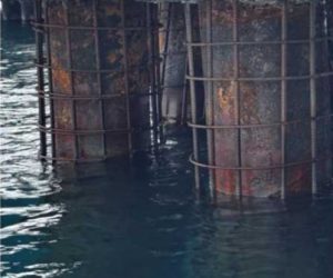 Safiport Devrilen rıhtımın eski kazıklarının 13 metre kotuna getirilip 60 kazığın kesimi Ve Normal Kottanda 40 kazığın kesimi yapılmıştır.